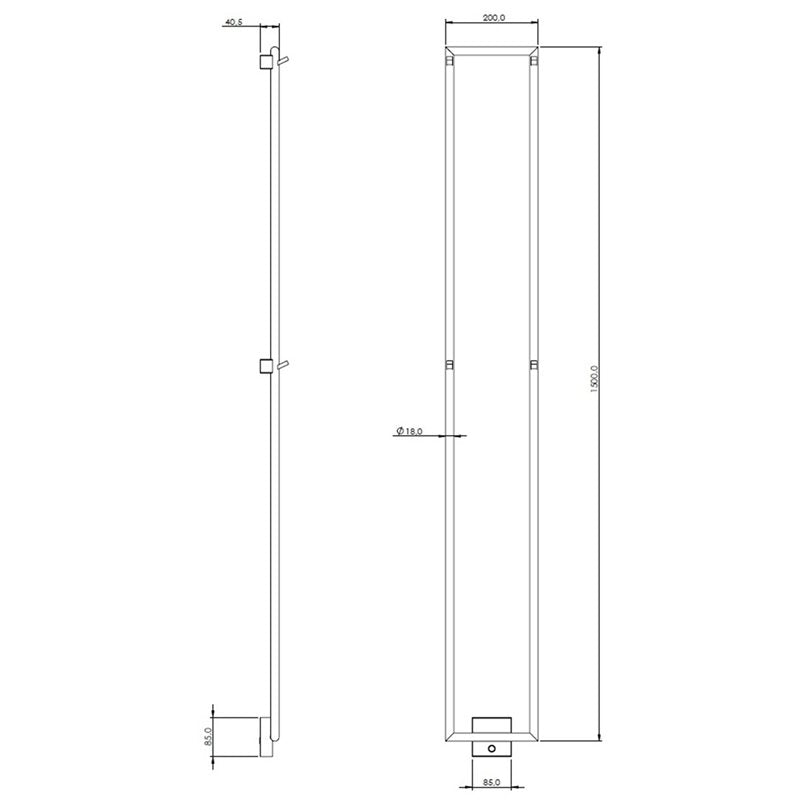 Med sina mått – 1500 mm hög och 200 mm bred – erbjuder modellen gott om plats för flera handdukar, samtidigt som den behåller ett slankt, vertikalt uttryck som passar även smalare väggytor.